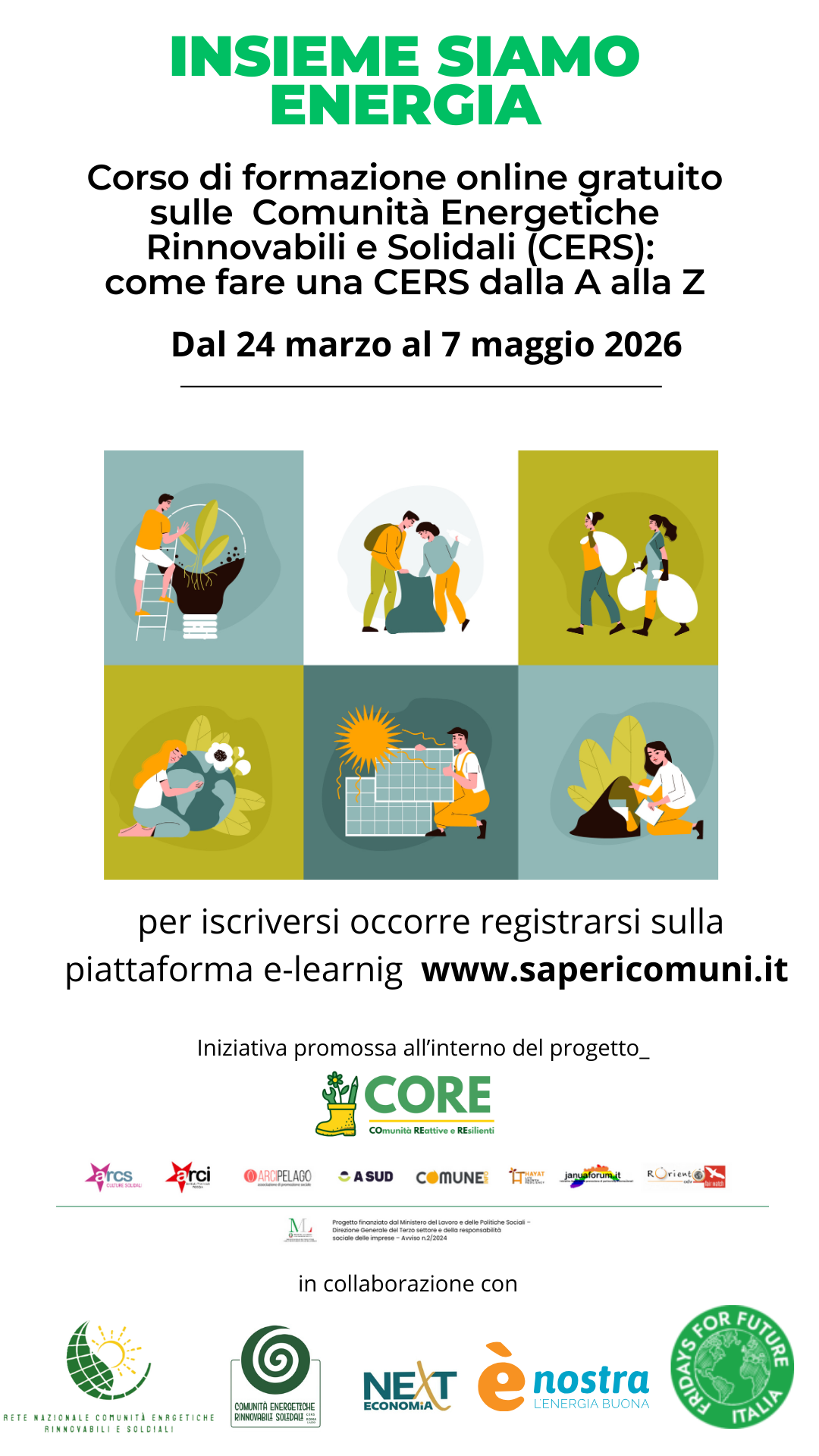 [Res-verona] 24 marzo ore 17.00 al via il Corso di formazione sulle Comunità Energetiche Rinnovabili e Solidali (CERS): percorsi di transizione ecologica dal basso